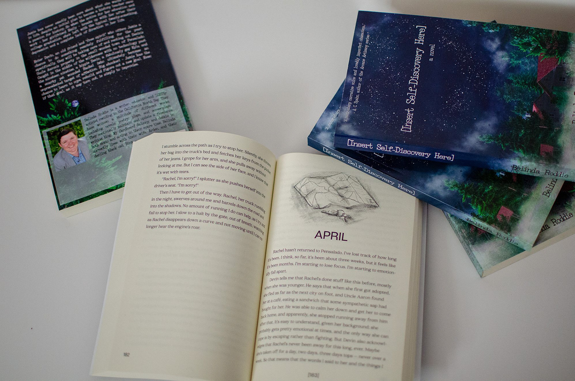 Freelance work, Summer 2019. I worked with an independent author to design and publish their debut novel. I designed the cover, interior layout, and illustrations. The novel is a new adult queer romance set in a cabin in the woods. I wanted to invoke a feeling of rustic coziness with the cover and layout.