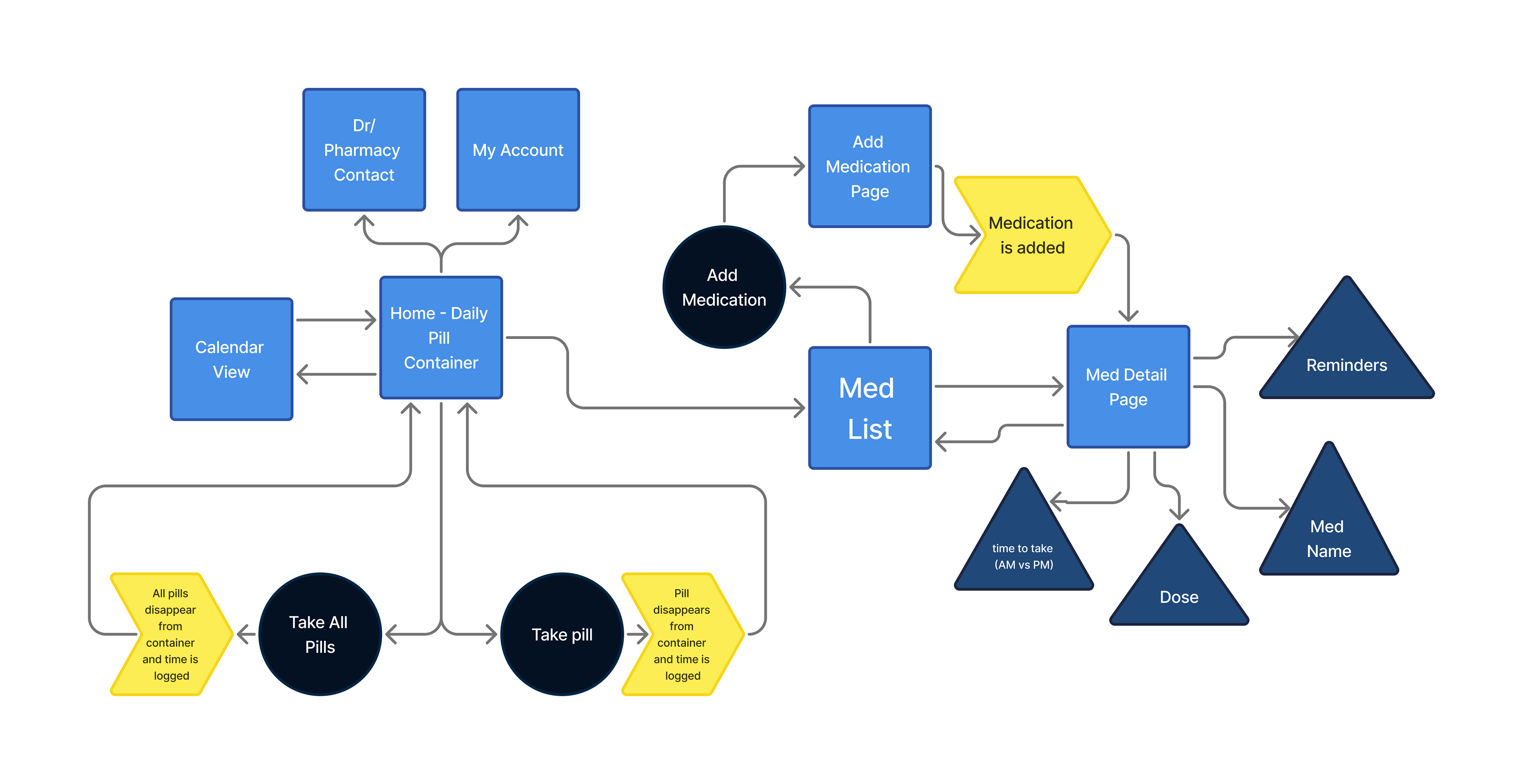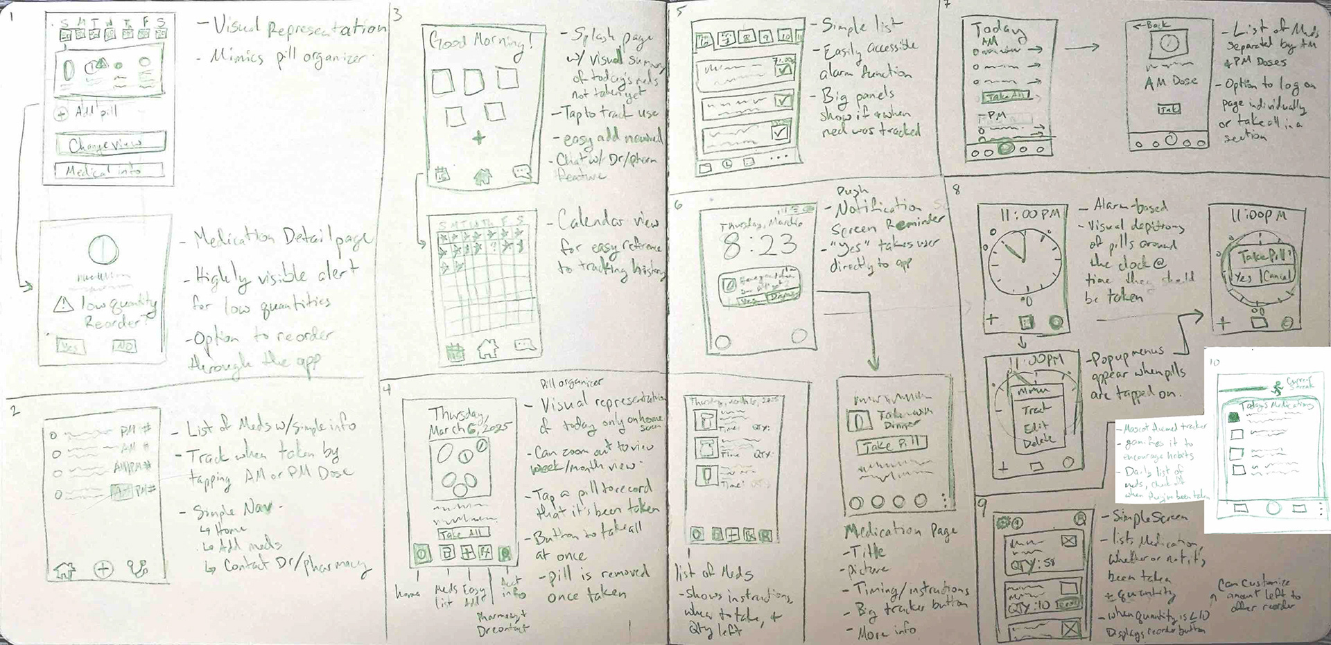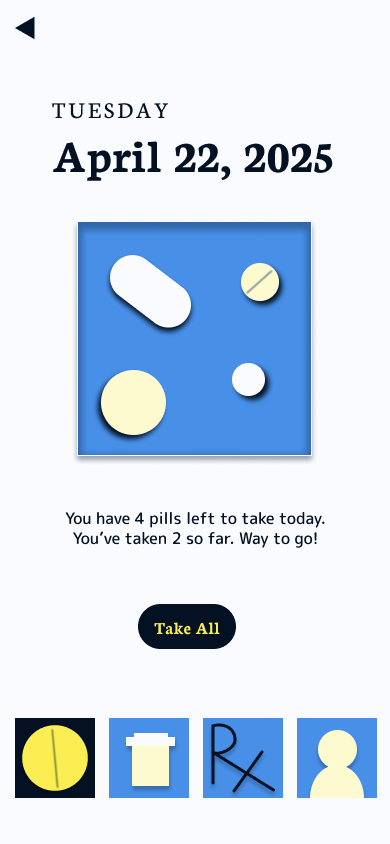 I created this app design for my UX Design class in Spring 2025. My goal was to create a better way to manage and track daily medication use.